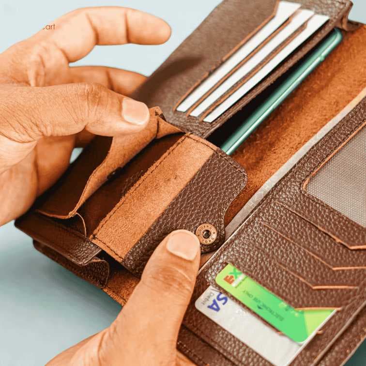 "Simple & Elegant Fits 1 mobile, 7 cards, 1 ID, 1 cash and 1 doc slot, Coin pocket Size: L 7.5"" x W 3.5"" x H 0.6"" Crafted from full-grain, vegetable-tanned premium leather Ages beautifully and built to last 6-month warranty against quality issues under regular use Cash on Delivery available — you can check before receiving.